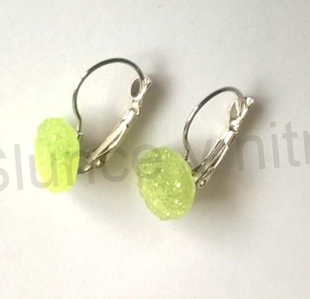Krásné, náušničky z galvanizovaného kovu s orgonitem. Náušnice se hodí jak pro ženy, tak pro dívky. Náušnice jsou typem visací, zapínání je na zacvaknutí, lepší jištění proti ztrátě. Orgonit na světlen odraží lesk. Vypadají velmi hezky. Mohou se vyskytnout bublinky, které nejsou na škodu, spíše tvoří zajimavý efekt. Barevnost kabošonu se může mírně lišit.