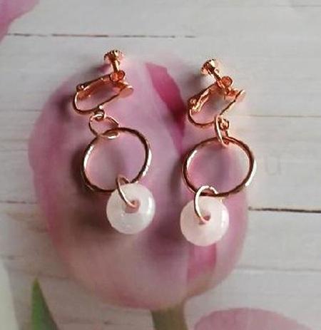 Krásné šroubovací minerální visací náušnice vhodné jak pro dívky, ženy, pro každodenní nošení. Náušnice jsou tvořené ze slitiny mosazi a minerálu donut růženín. Náušnice mají šroubovací zapínání, kroužek a minerál růženín.