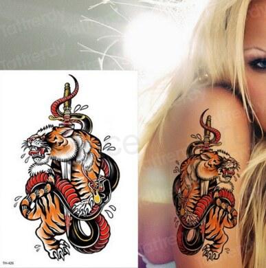 Voděodolné, dočasné tetovaní Tygr, had, meč (E642)