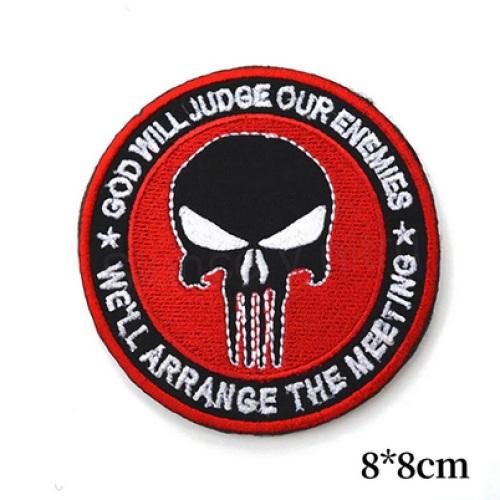 Vojenská našivka - Punisher na suchý zip včetně nášivky červená číslo 3 (C632)
